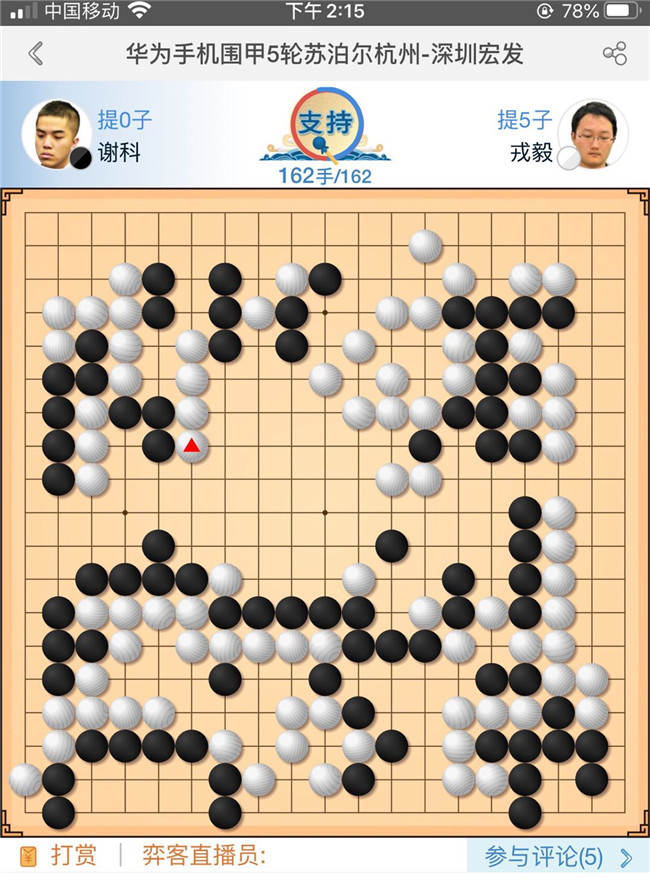 見(jiàn)圳客戶端?深圳新聞網(wǎng)2020年8月29日訊(記者周錦春)休戰(zhàn)一天的2020“華為手機(jī)杯”中國(guó)圍棋甲級(jí)聯(lián)賽,今天重燃戰(zhàn)火,第五輪繼續(xù)在浙江長(zhǎng)興進(jìn)行。深圳宏發(fā)隊(duì)對(duì)陣衛(wèi)冕冠軍蘇泊爾杭州隊(duì),結(jié)果以3比1大勝。目前積12分,暫居積分積分榜第二位。本輪亮點(diǎn):深圳宏發(fā)隊(duì)三連勝!快棋五連勝!戎毅五連勝!