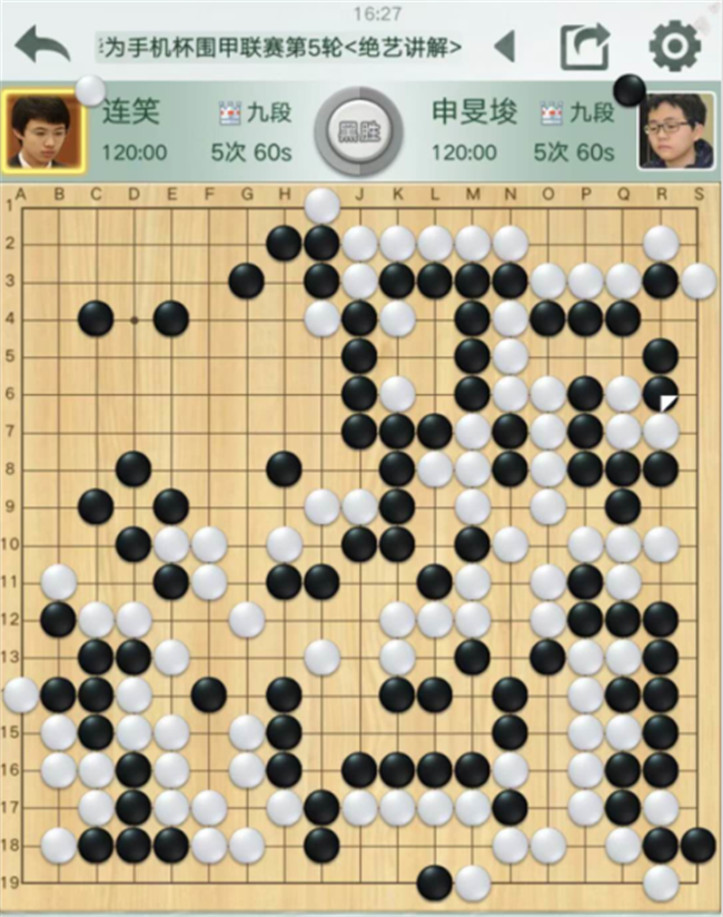 第四臺(tái),申旻俊執(zhí)黑對(duì)陣連笑,白棋必勝局面172殺黑死活看錯(cuò),白虧十幾目棋,瞬間落敗。