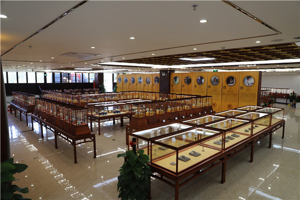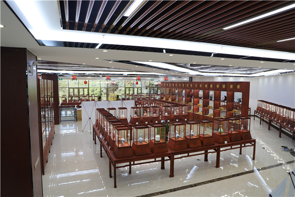 值得重點(diǎn)介紹的是,在珍品陳列區(qū),有不少原全國人大常委會副委員長李鐵映同志親自創(chuàng)作的工藝美術(shù)品。一是“鐵映十八式紫砂”,是李鐵映先生自身藝術(shù)文化修養(yǎng)的結(jié)晶。他以青銅、古玉等重器國寶為模,以詩詞、文論為識,以宜興獨(dú)有的紫砂材質(zhì)和豐富的工藝手段,吸取中國各種傳統(tǒng)工藝的特點(diǎn),創(chuàng)意了具有民族特色的簡潔古雅的紫砂新藝術(shù),精妙構(gòu)思,博觀約取,歷數(shù)年制成。2010年元月,李鐵映先生將“鐵映十八式紫砂” 捐贈一套給國家博物館。二是限量仿制清宮琺瑯彩瓷?,m瑯彩瓷創(chuàng)燒于康熙,興盛于雍正、乾隆兩朝,之后便沉潛史海,難覓芳蹤。李鐵映先生得知后,高度重視,數(shù)度深入相關(guān)博物館和景德鎮(zhèn)院校、企業(yè)調(diào)研,組織成立“紫玄琺瑯瓷研究室”,確立了“發(fā)掘保護(hù)、繼承發(fā)展”的指導(dǎo)思想,提出“仿古不泥古,仿清更超清”仿制要求,經(jīng)過成百上千次的反復(fù)試驗(yàn),最終成品,既具有清代康雍乾琺瑯彩瓷的藝術(shù)品味和精神風(fēng)貌,但在材質(zhì)、工藝、技術(shù)等方面有所超越,可以說,每件作品都能集工藝價(jià)值、文化價(jià)值、歷史價(jià)值、藝術(shù)價(jià)值于一身。