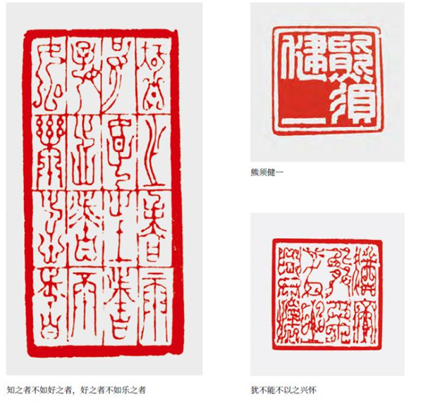 說起自己的代表作,寧老師十分謙虛,但筆者還從他的印屏、印作中,從以往宣傳報道中理出了一些頭緒。比如,剛來深圳,有感于鄧小平同志的功績,刻了一方《總設計師鄧小平》,陳巨來的印味明顯。2013年寶安區(qū)書法協(xié)會發(fā)行新年掛歷上印有“蛇年大吉”印章,便出自他手。那是一方金文白文印,整體舒朗開闊,靈動高古,爛漫天成,不失為其代表作。還有,用一方印完整地刻出了268字的《心經(jīng)》亦是獨一無二的。他為友所刻《真善美》朱文鳥蟲篆,布局疏密自然,光潔妍美,婀娜多姿,韻味無窮。元朱文白文印《熊須健一》,疏密呼應,“一”字處大片留紅,與另三字形成強烈對比,“須”字三撇作美化處理,形成印眼。此印工穩(wěn)爽朗,行刀如筆,耐人尋味。還有應約為著名棋手武宮正樹、徐瑩等所刻鳥蟲篆印均“嵌入”圍棋黑白二子的元素,自然貼切,又妙趣橫生。還有為出版社、書局、書籍插圖以及賽事配刻的印章更是數(shù)不勝數(shù)。當前,寧老師依然精神飽滿、創(chuàng)作旺盛,相信未來還會不斷有令人驚喜的印品佳作問世。