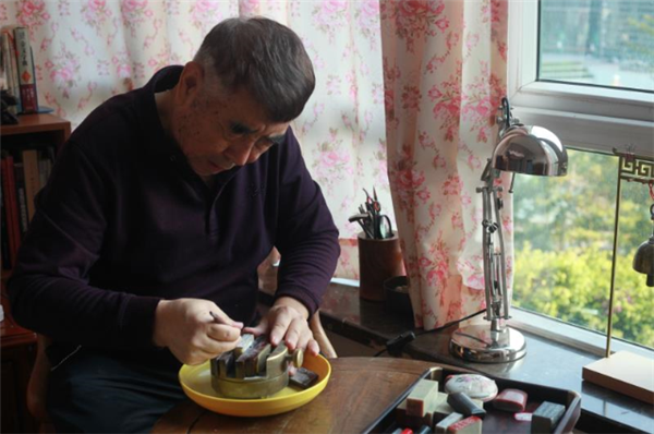 最后,請寧老師對治印的后學說幾句,他說“什么時候都不晚,只要肯開始,找到好的老師,持之以恒,便有機會成功”,自己的經(jīng)歷就是一個證明吧。也是,當下中國逐漸進入“老齡化社會”,許多老人退休之后“無所事事”,等退體金、等“臨門一腳”成為常態(tài)。而寧起興憑著一份興趣,六十歲而后拓出一片天地,堪為榜樣!令人欣喜是,他的行為對子孫也是一種言傳身教,小外孫女2歲時在街上看到篆字招牌,馬上就說這是姥爺?shù)淖帧F饺眨€學著姥爺讀書刻章的模樣,做手工、畫畫,常有創(chuàng)意。看到這一幕,作為古稀老人,寧起興感到非常欣慰。他說,自己做到了“老有所為”,還產(chǎn)生了教化子孫的效果,開心是自然的。他希望更多的人喜歡中國篆刻藝術(shù),希望更多的退休老人們生活充實、老有所為!