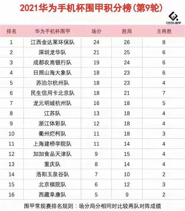 2021華為手機(jī)杯中國圍棋甲級聯(lián)賽常規(guī)賽第九輪江西金達(dá)萊環(huán)保隊3:1深圳龍華隊