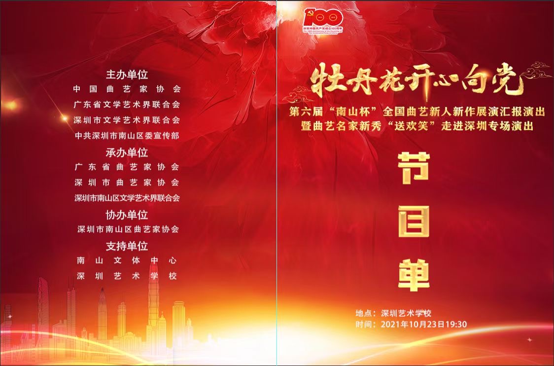 讀特客戶(hù)端·深圳新聞網(wǎng)2021年10月24日訊(記者 張俊達(dá))23日,深圳曲藝界迎來(lái)大日子。“牡丹花開(kāi)心向黨”——第六屆“南山杯”全國(guó)曲藝新人新作展演匯報(bào)演出暨曲藝名家新秀“送歡笑”走進(jìn)深圳專(zhuān)場(chǎng)演出在深圳南山藝術(shù)學(xué)校舉行。