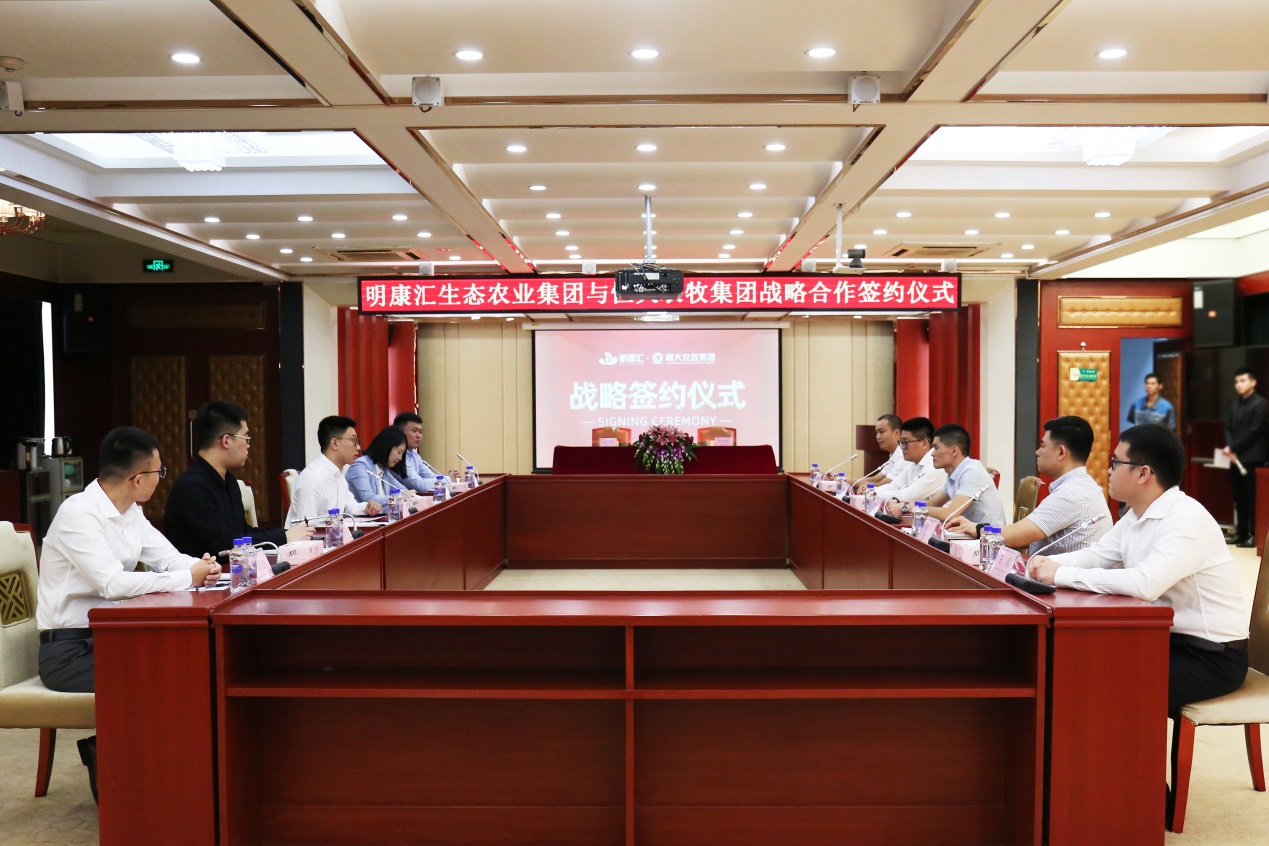 深圳新聞網(wǎng)2019年9月24日訊9月20日上午,恒大農(nóng)牧集團(tuán)有限公司(以下簡稱“恒大農(nóng)牧”)與世界500強(qiáng)海亮集團(tuán)旗下明康匯生態(tài)農(nóng)業(yè)集團(tuán)有限公司(以下簡稱“明康匯”)簽訂戰(zhàn)略合作協(xié)議。雙方將充分發(fā)揮各自優(yōu)勢,進(jìn)一步推進(jìn)業(yè)務(wù)整合,深化資源利用,提升戰(zhàn)略協(xié)同層次和水平。恒大農(nóng)牧總裁王宇豐、恒大糧油董事長汪茜、明康匯總裁馮劍魯、明康匯副總裁高世俊等出席簽約儀式。