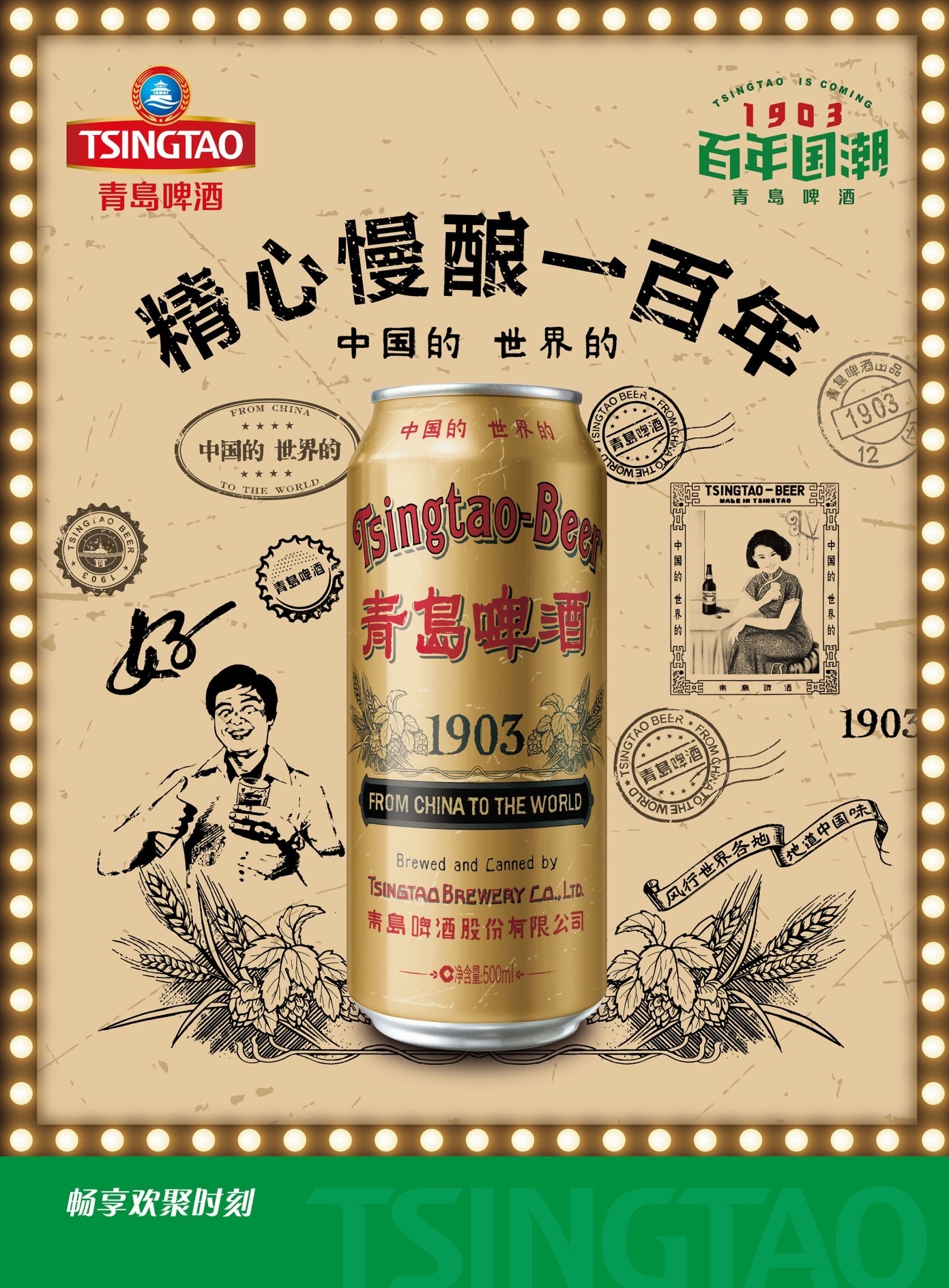 經(jīng)典1903國潮罐是青島啤酒“向經(jīng)典致敬,再造精釀傳奇”理念下推出致敬經(jīng)典的力作,采用青島啤酒1903年“兩段法低溫長時(shí)間慢熟”獨(dú)特且傳統(tǒng)的釀造工藝,始終堅(jiān)持工匠精神,從原料篩選到工藝釀造的每一個(gè)環(huán)節(jié),都像雕琢藝術(shù)品一樣精致打磨,精心慢釀,造就了麥香濃郁醇香四溢的口感和體驗(yàn),其罐體復(fù)刻了百年前經(jīng)典瓶貼畫面的匠心細(xì)節(jié),復(fù)古元素與國際時(shí)尚潮流融于一體,是復(fù)古和時(shí)尚的典范。