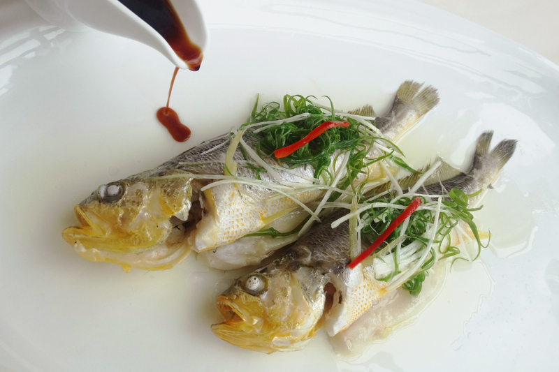 黃花魚本就嬌貴,離水易死,如今滿腹魚春更是肥美。外表黃燦燦的黃花魚,腩部越金黃,魚越靚。上乘的食材簡法制作,以求原滋原味。只加姜絲和蔥絲清蒸4~5分鐘,后加上蒸魚豉油。魚肉如如芙蓉出水一般雪白,不用復(fù)雜調(diào)料加以粉飾。