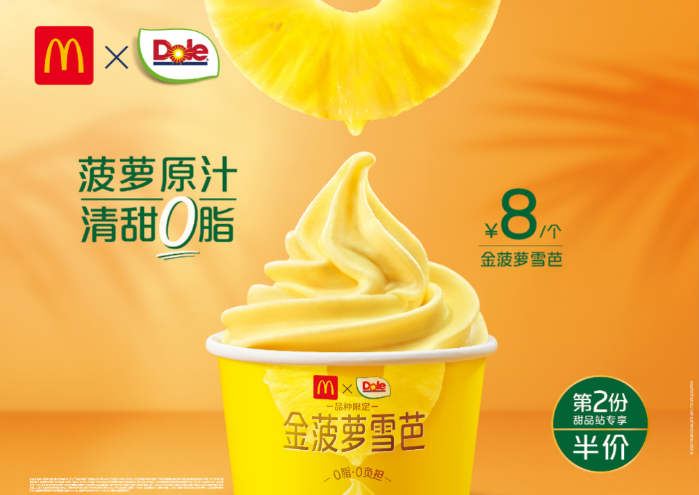 麥當勞中國推出金菠蘿雪芭 零脂肪提供更多輕食選擇