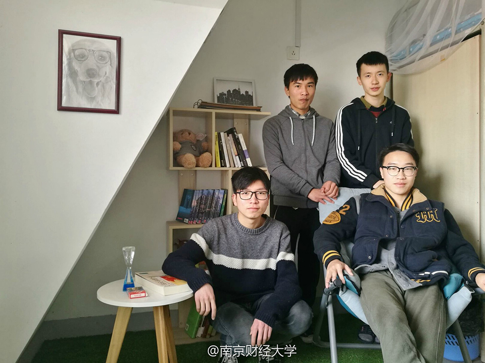 “這四個(gè)孩子風(fēng)格迥異,學(xué)習(xí)成績(jī)也都很好,比如劉以康,績(jī)點(diǎn)4.0,是個(gè)超級(jí)學(xué)霸;廉鎮(zhèn)宇平時(shí)愛(ài)攝影,很活躍……”南京財(cái)經(jīng)大學(xué)外國(guó)語(yǔ)學(xué)院黨委副書記李慕原笑著介紹,早有耳聞他們宿舍很文藝,今天見(jiàn)到果然名不虛傳,“男生宿舍搞得這么美,我自己都覺(jué)得很有意思,不少女孩子看了圖片也驚嘆說(shuō)要來(lái)好好借鑒?!?/p>