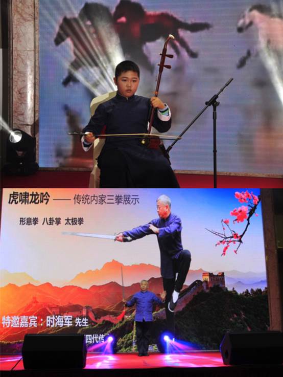 值得一提的是,主辦方還邀請到兩位特別嘉賓助力演出。其一是小小“嶺二代”嚴(yán)嘉一小朋友的二胡獨奏,他以一曲惟妙惟肖的《賽馬》,將中大嶺南的傳承精神揮灑得淋漓盡致;另外一位,則是深圳校友會鼎力邀請的孫氏內(nèi)家拳第四代傳人時海軍先生,他帶來了難得一見的傳統(tǒng)內(nèi)家功夫表演《虎嘯龍吟》。