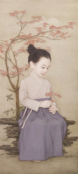 “我畫了我女兒第一張油畫,就覺得她形象很好,一個小青花的背心,頭上扎了一個小髻兒,很有中國傳統(tǒng)兒童的氣質(zhì)。我就想到利用中國元素的豐富畫面,把孩子的氣質(zhì)融合進去。在這個基礎(chǔ)上能做到融合,就是一種不一樣的風格的出現(xiàn)。”萬里說,把女兒作為繪畫題材的創(chuàng)作中,得到了莊老師的很多提點,因為中國目前沒有這方面的探索,更多的是像徐悲鴻、林松年這樣對中國“意象”的探索。