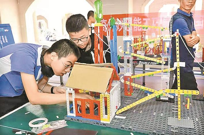 學(xué)生參與中小學(xué)科技模型競賽。