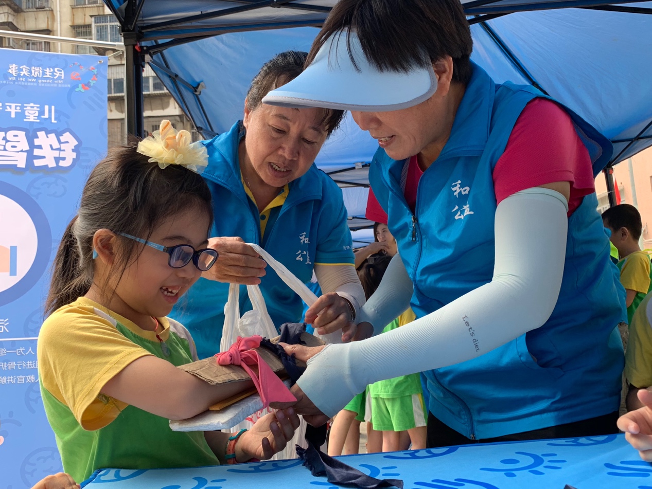 兒童平安訓(xùn)練營活動共有5個版塊,分別是動感地帶、火眼金睛、鐵壁鋼手、浮力盔甲、應(yīng)急包。動感地帶活動版塊的主體是地震體驗平臺,通過安全教育車的地震體驗功能,社區(qū)居民成功學(xué)會地震躲避知識要點:規(guī)避易倒塌、易破碎、已墜落三類物品;桌下/床下躲避跪、躲、抓三大要點。浮力盔甲是當(dāng)身邊發(fā)生溺水或者存在溺水隱患時,可以利用身邊常用的物品比如礦泉水瓶和衣服制作緊急救生衣。鐵壁鋼手是災(zāi)害發(fā)生、救援難以及時到達情況下,利用身邊的物品,對手臂骨折者進行簡易包扎。火眼金睛是在許多大地震、火災(zāi)和意外傷害中,教會學(xué)生認識一些室內(nèi)、室外的常見安全隱患。