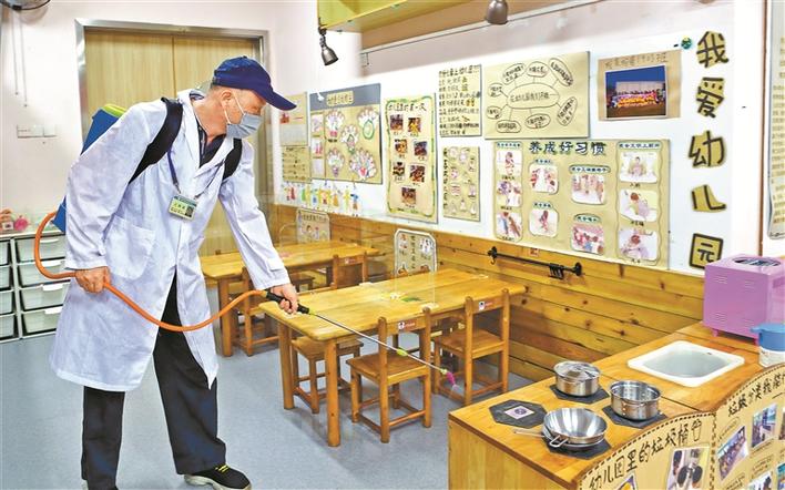 為做好開(kāi)園準(zhǔn)備,前日,南山區(qū)教育幼兒園聘請(qǐng)專業(yè)消殺公司對(duì)園區(qū)進(jìn)行消殺。深圳特區(qū)報(bào)記者周紅聲攝