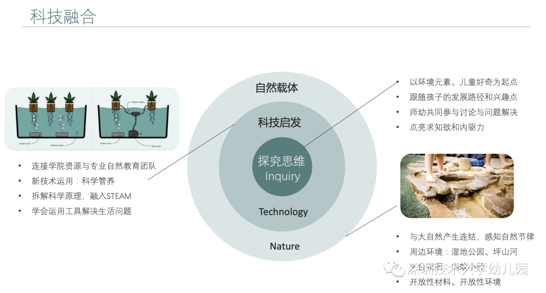 園舍內(nèi),聯(lián)動大學學院資源和專業(yè)自然教育團隊打造自然教育場所,使得科技與自然在幼兒環(huán)境中有機結合。自然在前,技術運用在后,孩子將用探究的眼光發(fā)現(xiàn)如何運用技術解決生活問題。