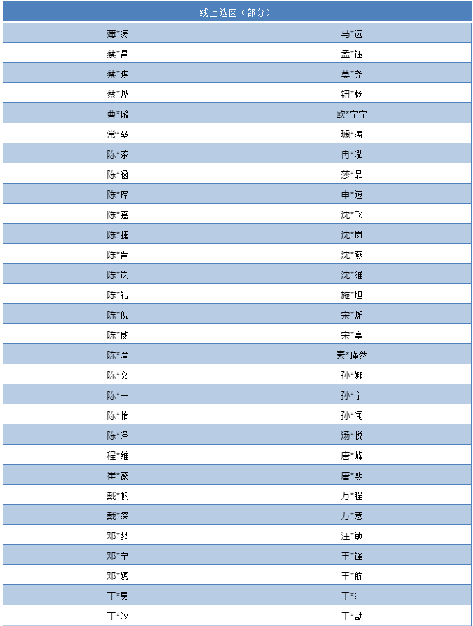現(xiàn)公布第三批晉級(jí)復(fù)賽名單如下: