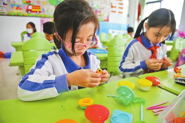 羅湖教科院附屬學校二年級同學正在上黏土課。 本版圖片除署名外均由深圳晚報記者 陳玉 劉夏藍 攝