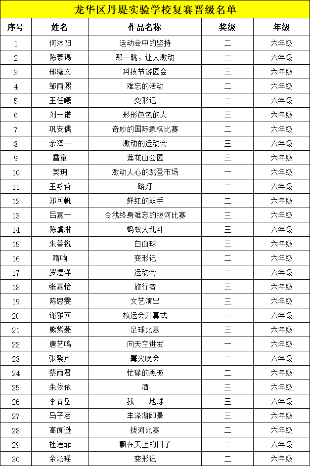 自2021年1月,活動(dòng)征稿啟動(dòng)以來(lái),獲得了深圳市廣大中小學(xué)生、教師、文學(xué)愛(ài)好者的熱烈響應(yīng)積極參與,吸引了深圳百余所學(xué)校的上萬(wàn)人關(guān)注報(bào)名?,F(xiàn)公布龍華區(qū)丹堤實(shí)驗(yàn)學(xué)校晉級(jí)復(fù)賽名單如下: