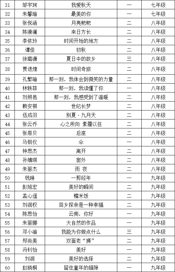 自2021年1月,活動(dòng)征稿啟動(dòng)以來,獲得了深圳市廣大中小學(xué)生、教師、文學(xué)愛好者的熱烈響應(yīng)積極參與,吸引了深圳百余所學(xué)校的上萬人關(guān)注報(bào)名。現(xiàn)公布深圳市龍華區(qū)教科院附屬學(xué)校晉級(jí)復(fù)賽名單如下: