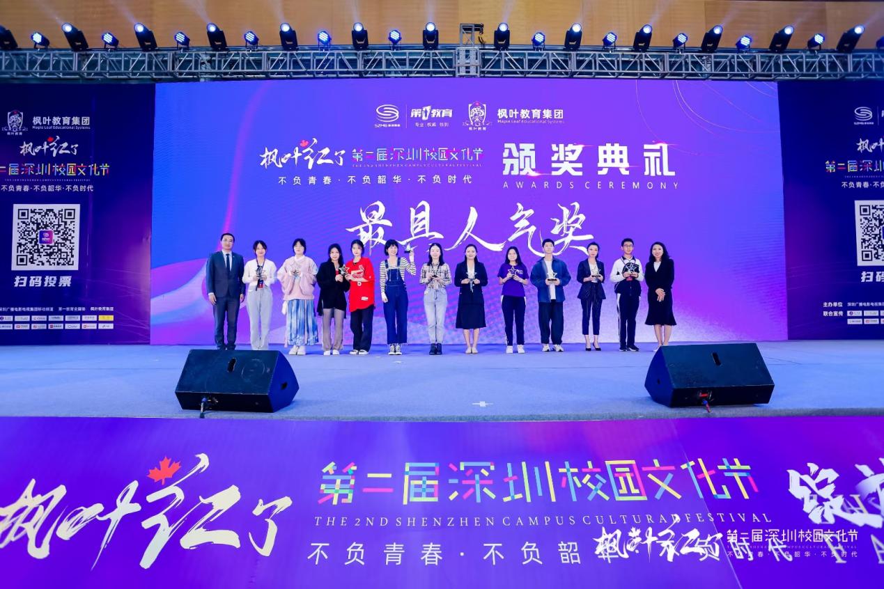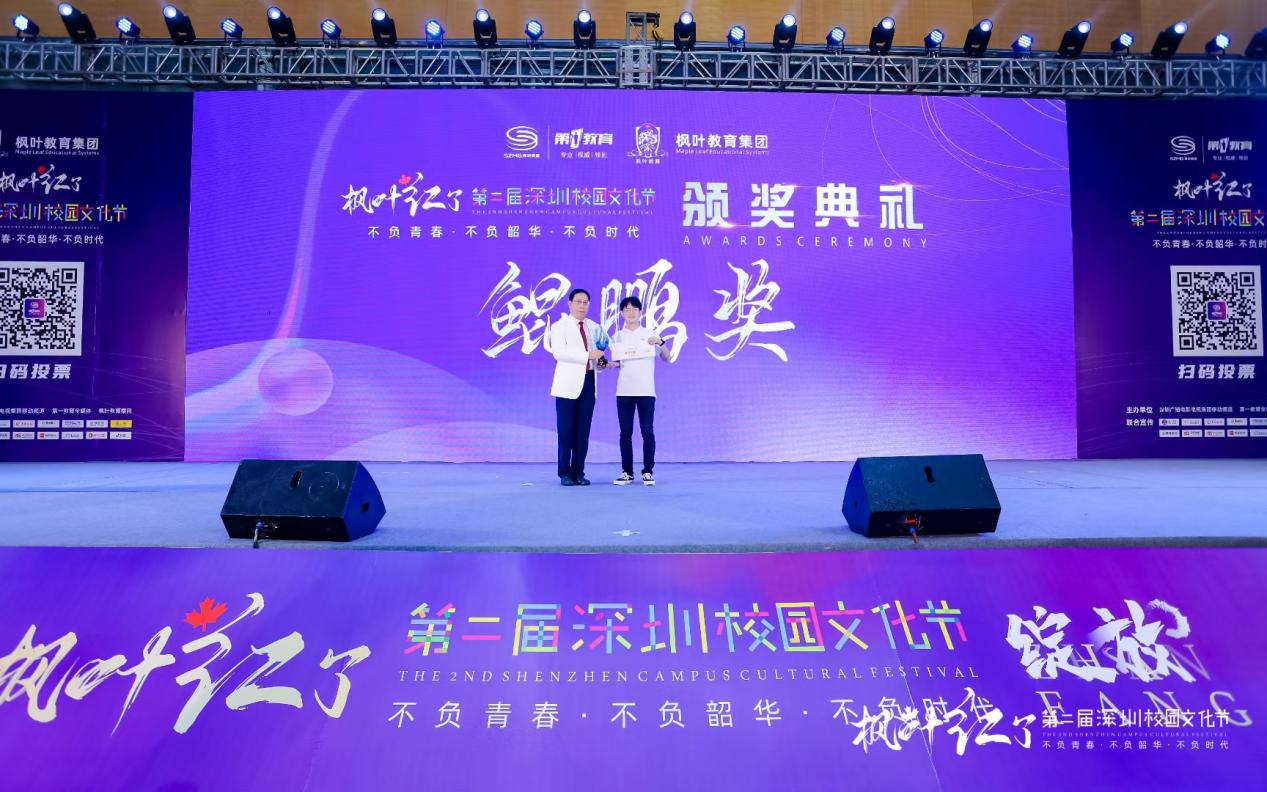 另據(jù)了解,本屆活動不以競賽為目的,不設(shè)專業(yè)評委,不設(shè)專業(yè)分數(shù),不設(shè)獎牌等級,而是以鼓勵學(xué)生全面發(fā)展、校園文化交流為初心,由觀眾們自發(fā)投票評選出魅力社團獎、優(yōu)秀指導(dǎo)老師獎、鯤鵬獎、綻放獎、最具人氣獎。記者從現(xiàn)場了解到,獲得本屆魅力社團獎的學(xué)校有10所,分別是:深圳市南山區(qū)文理實驗學(xué)校(集團)《模擬聯(lián)合國社》、南山區(qū)前海學(xué)?!栋羟蜿牎贰⑸钲趯嶒瀸W(xué)校高中部《回聲合唱團》、深圳高級中學(xué)(集團)中心校區(qū)《深高學(xué)生戲劇團》、深圳市楓葉學(xué)?!队⒄Z戲劇社》、深圳市龍華中學(xué)《跆拳道空手》、深圳市蛇口育才教育(集團)育才中學(xué) 《404樂隊》、深圳市育新學(xué)校 《The best軍樂團》、南方科技大學(xué)附屬中學(xué)《機器人隊》、深圳市藝術(shù)高中《鐘呂交響管樂團》;獲得本屆校園文化節(jié)鯤鵬獎(唯一)的學(xué)校是:南方科技大學(xué)附屬中學(xué);獲得本屆校園文化節(jié)綻放獎的是9所學(xué)校,分別是:深圳市第一職業(yè)技術(shù)學(xué)校、深圳中學(xué)、深圳市藝術(shù)高中、深圳市寶安中學(xué)(集團)、深圳市第三職業(yè)技術(shù)學(xué)校、深圳市楓葉學(xué)校、深圳市龍崗區(qū)龍城高級中學(xué)、寶安區(qū)為明雙語實驗學(xué)校、深圳市蛇口育才教育(集團)育才中學(xué);獲得現(xiàn)場最具人氣獎的學(xué)校有10所,分別是:深圳市第一職業(yè)技術(shù)學(xué)校、深圳市福田區(qū)華強職業(yè)技術(shù)學(xué)校、深圳市第三職業(yè)技術(shù)學(xué)校、深圳大學(xué)附屬中學(xué)、紅嶺中學(xué)(集團)石廈初中部、龍崗區(qū)蘭著學(xué)校、萬科梅沙書院、深圳市南山區(qū)文理實驗學(xué)校(集團)、筍崗中學(xué)、寶安中學(xué)(集團);最后同時獲得本屆校園文化節(jié)優(yōu)秀指導(dǎo)老師獎的學(xué)校分別來自:南方科技大學(xué)附屬中學(xué)、深圳市第一職業(yè)技術(shù)學(xué)校、深圳中學(xué)、深圳市蛇口育才教育(集團)育才中學(xué)、深圳市寶安中學(xué)(集團)、深圳市第三職業(yè)技術(shù)學(xué)校、深圳市藝術(shù)高中、深圳市楓葉學(xué)校、寶安區(qū)為明雙語實驗學(xué)校、深圳市龍崗區(qū)龍城高級中學(xué)。