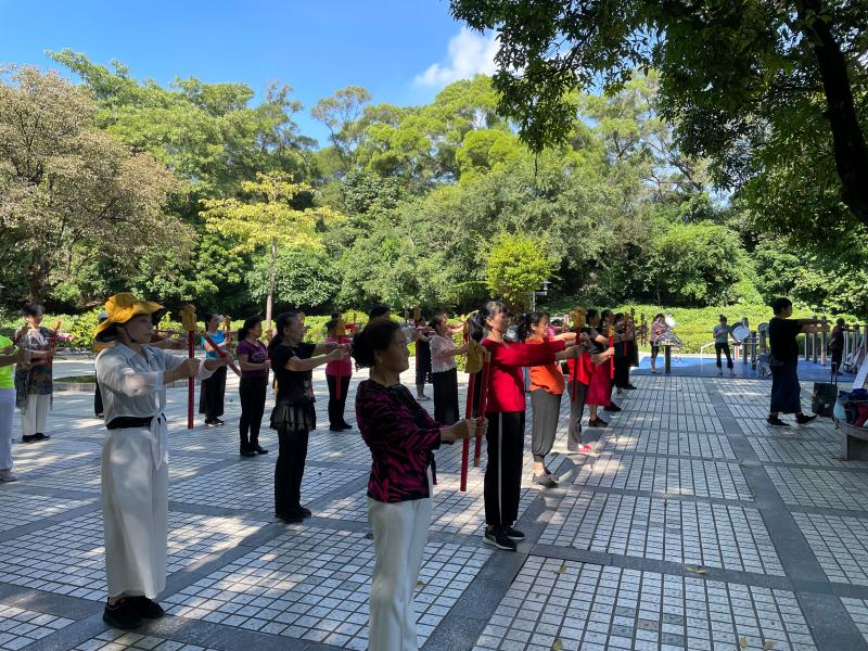 讀特客戶端·深圳新聞網(wǎng)2021年11月26日訊(記者 陳彬)這一兩個(gè)月來,每天早上,有一群精氣神十足的阿姨們,手持一種舞蹈道具,在南頭古城臨中山公園的地方,非常有意思地跳著一種舞蹈,成為了南頭古城的一道風(fēng)景。在她們舞蹈時(shí),時(shí)不時(shí)會(huì)有路人走近好奇地問:阿姨,你們這是在跳一種韓國舞蹈、還是日本舞蹈?她們會(huì)指著旁邊的KT板展架說:好好看看那上頭,學(xué)習(xí)學(xué)習(xí)我們中國文化。