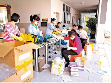 根據(jù)深圳市教育局下發(fā)的《關(guān)于進(jìn)一步做好中小學(xué)在線教學(xué)有關(guān)工作的通知》,光明區(qū)教育局組織各學(xué)校在做好防疫工作的前提下,按照“錯(cuò)時(shí)間、分時(shí)段、分散式、多形式”的原則,陸續(xù)開(kāi)展新教材發(fā)放工作。
