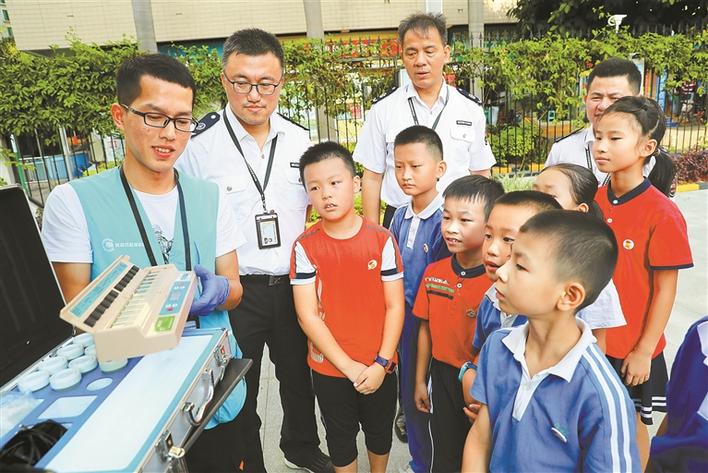 在寶安區(qū)濱海小學(xué),該校三年級6個班約300名學(xué)生齊聚這里,參加了一場別開生面的校園食品安全游園會活動。