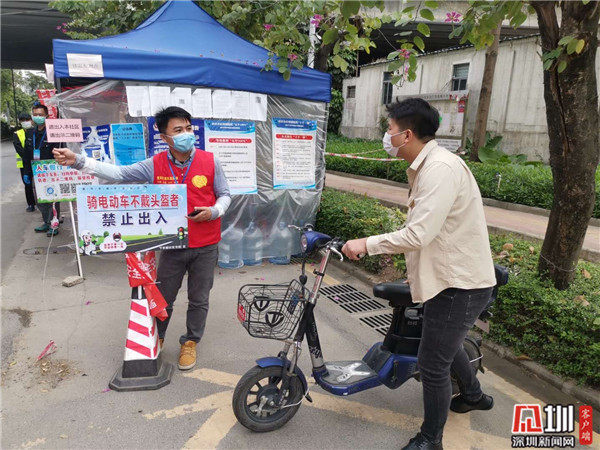 在社區(qū)工作人員的指導(dǎo)下,這位男子穿上“紅馬甲”,手拿體溫槍?zhuān)⒓赐度氲搅朔酪吡x工服務(wù)中。為進(jìn)出人員測(cè)量體溫、登記等,這位男子“不漏一車(chē)一人”,義工服務(wù)做得十分認(rèn)真。半小時(shí)志愿服務(wù)后,該男子意識(shí)到自己不戴頭盔的錯(cuò)誤行為,并表示以后會(huì)注意,“這是一次很特別的‘教訓(xùn)’,以后我肯定會(huì)記住戴頭盔的!”