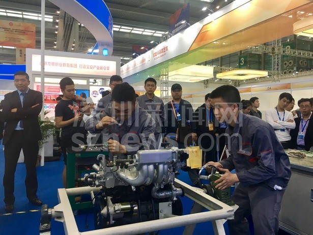 寶安職業(yè)技術學院學生現場進行汽車發(fā)動機拆裝與檢測