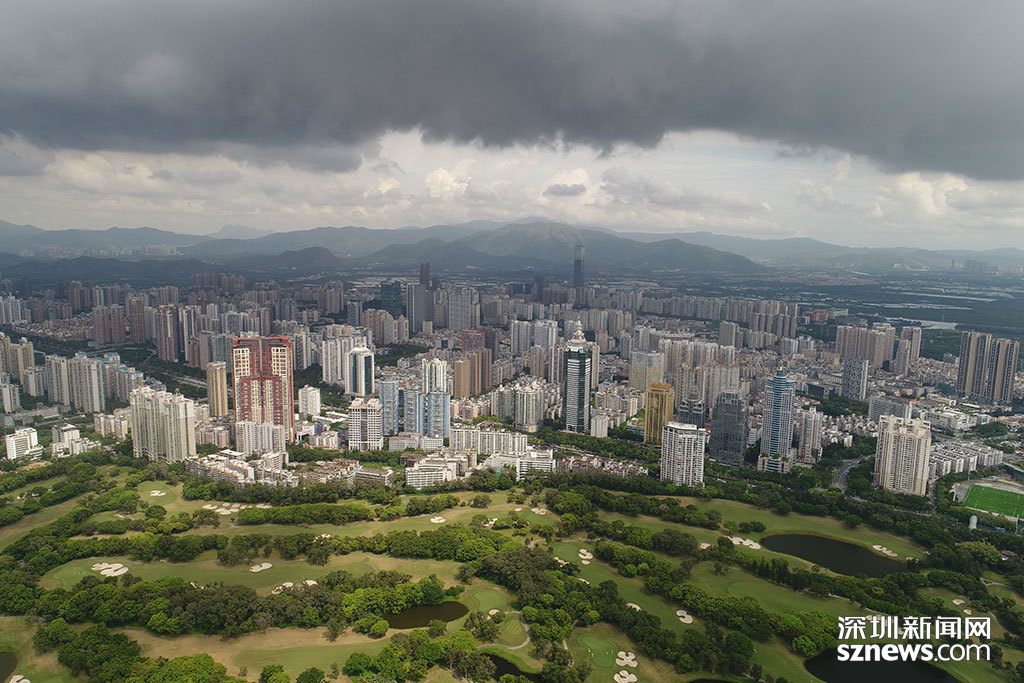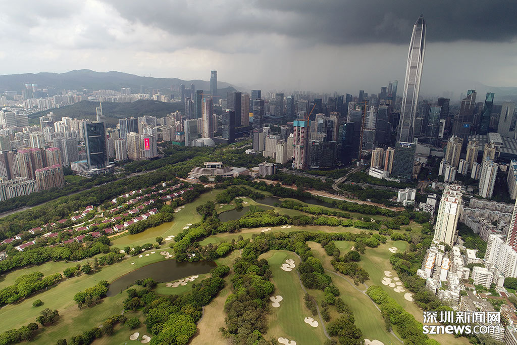 烏云籠罩下的平安大廈與深圳高爾夫俱樂(lè)部球場(chǎng)