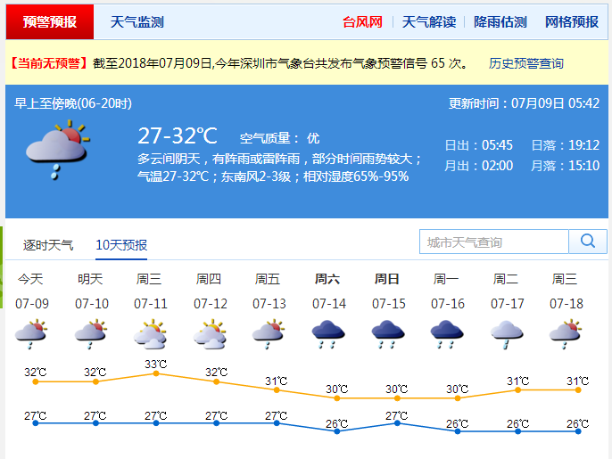 深圳新聞網(wǎng)7月09日訊(記者 何暢)深圳市氣象臺(tái)預(yù)計(jì),9-10日多云有雷陣雨,部分時(shí)間雨勢(shì)較大,27-32℃,濕度65%-95%;11-12日天氣酷熱,能見(jiàn)度下降,有灰霾,可能出現(xiàn)局部強(qiáng)對(duì)流天氣;13-15日有一次較明顯的降水過(guò)程。