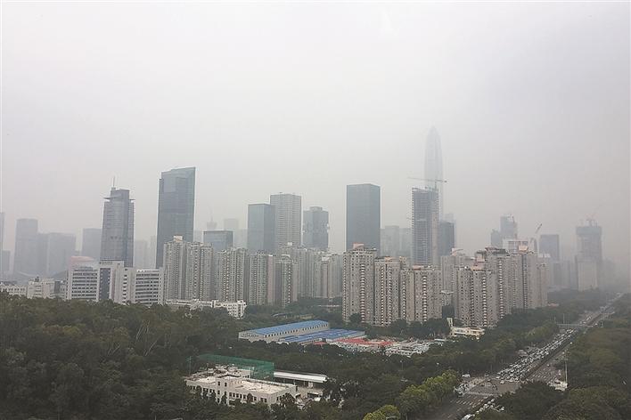 ▲深圳昨現(xiàn)灰霾天。 深圳晚報 見習(xí)記者 楊少昆 攝
