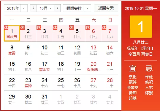 10月:國慶長假