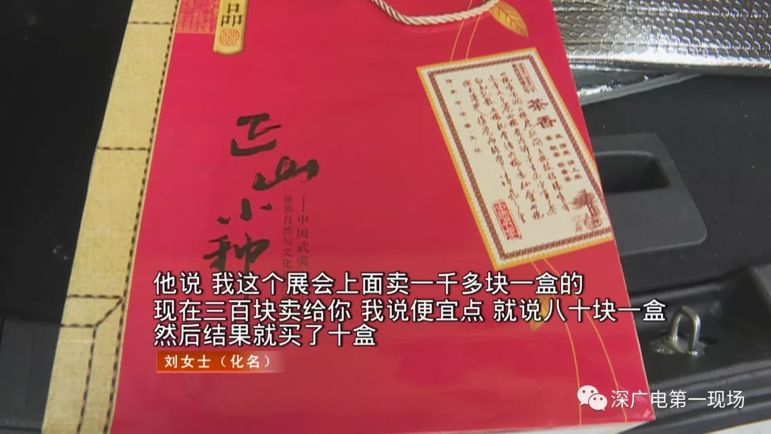 隨后,男子就拿出這樣一盒正山小種的禮盒裝向劉女士展示,并表示這價格嘛,好商量。