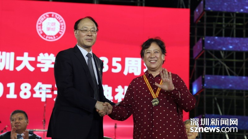 35年來,深大培養(yǎng)了一大批創(chuàng)新創(chuàng)業(yè)領軍人物。當天,深大一批杰出校友回到了母校,校友代表、深圳市正中投資集團董事長鄧學勤為新生講述了自己的創(chuàng)業(yè)故事,使得深大人身上的精神得以傳承。深大黨委書記劉洪一為榮休獎杰出貢獻獎獲得者代表鄭易之教授頒獎,表彰后者在科研和教學方面做出的卓越貢獻。此后,深大師生用精彩的節(jié)目為學?!皯c生”。