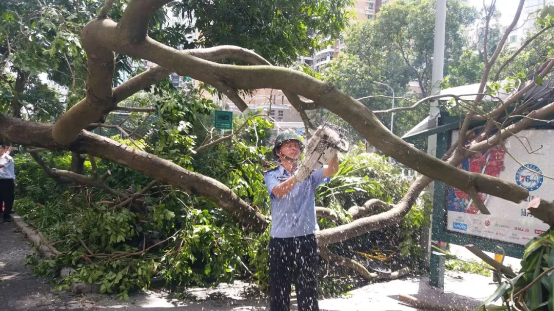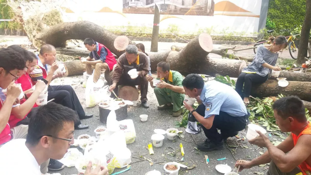 從臺(tái)風(fēng)前到臺(tái)風(fēng)后,唐順華一直在一線。他不僅是一個(gè)指揮員,還是一名戰(zhàn)斗員,一起去處理倒伏樹(shù)木、清理路障。因?yàn)槿耸址浅S邢?,他不僅一直要組織指揮,自己也一直身體力行,連續(xù)90多個(gè)小時(shí)沒(méi)有回家,一直在轄區(qū),排查隱患,處理事情。