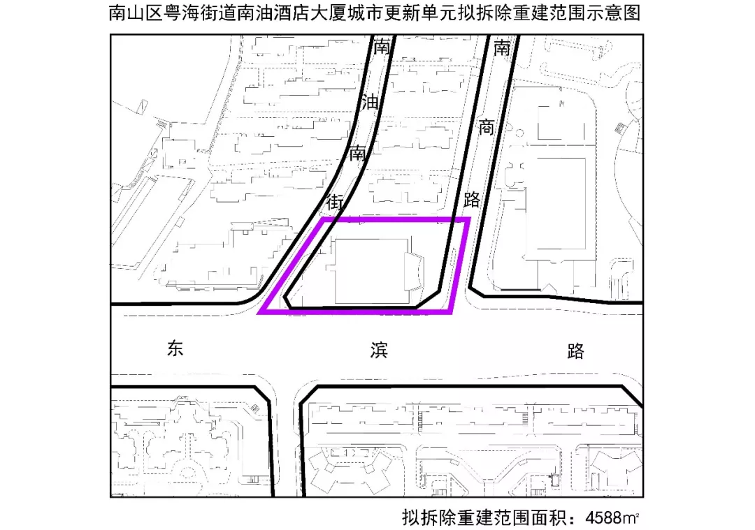 9月18日,南山區(qū)城市更新局在官網(wǎng)上發(fā)布了“關(guān)于《2018年深圳市南山區(qū)城市更新單元計劃第五批計劃》的公告”,南油酒店位列其中。公告明確指出,南油酒店擬更新方向為商業(yè)用地,擬拆除范圍用地面積共4588平方米,擬拆除重建用地范圍內(nèi)應(yīng)落實不少于1376平方米用地用于建設(shè)城市基礎(chǔ)設(shè)施、公共服務(wù)設(shè)施或者城市公共利益項目,擬貢獻率約為30%。