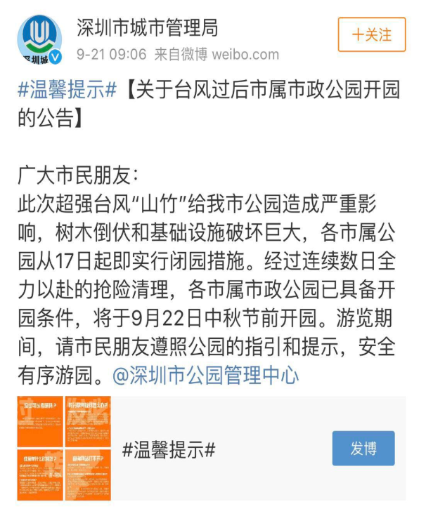 經(jīng)受過(guò)臺(tái)風(fēng)洗禮后的深圳市屬公園今天!?。〗K于都開園啦!