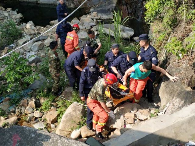 到現(xiàn)場后,民警了解發(fā)現(xiàn)該男子在爬山的過程中不小心踩到苔蘚摔倒受傷,當(dāng)場倒地不起,無法動彈。情況緊急,四周山路陡峭,120急救人員短時(shí)間內(nèi)難以到達(dá)進(jìn)行救治。這時(shí),葉孟庭等民警當(dāng)機(jī)立斷,將同行救援隊(duì)員分成兩組,用擔(dān)架將傷者一步步接力抬下山。此處位于亂石山澗中,隊(duì)員只能齊心協(xié)力抬著擔(dān)架一點(diǎn)一點(diǎn)小心挪移,坡陡石滑,空氣悶濕,加之荊棘擋道,隊(duì)員們汗如雨下,整整花了2個(gè)多小時(shí)才將擔(dān)架安全抬到盤山公路懸崖邊,隊(duì)員們個(gè)個(gè)衣衫濕透,手腳上的擦劃痕跡清晰可見。