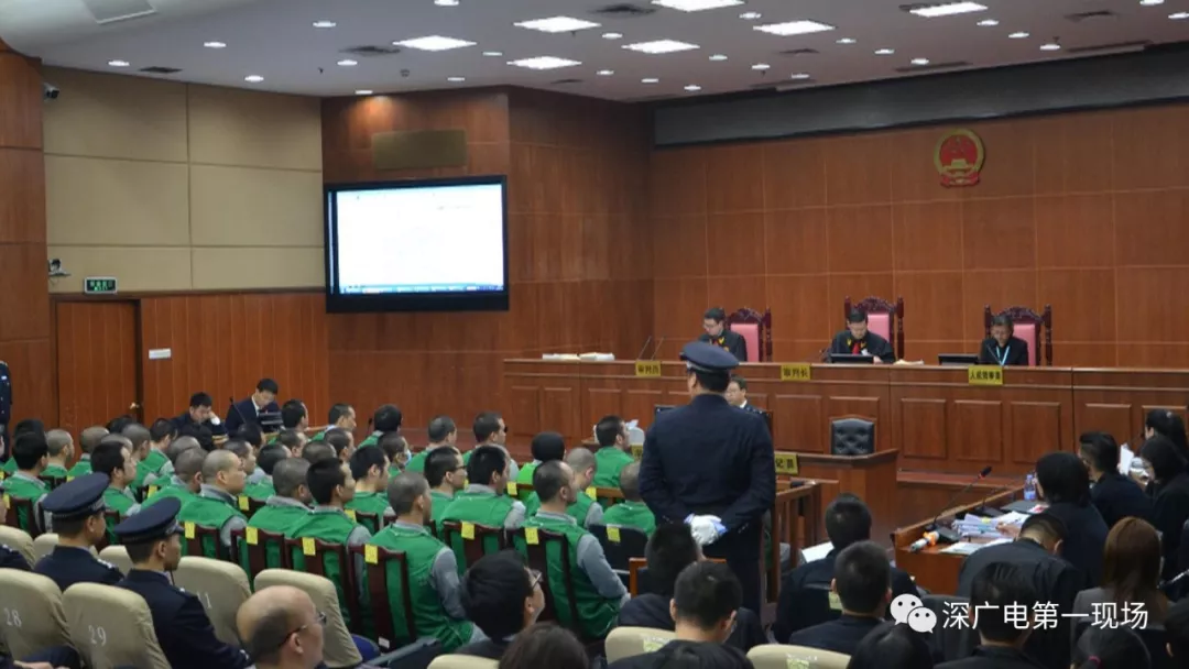 本案庭審時間共持續(xù)4天,其中僅訊問、舉證即持續(xù)2天時間。公訴機關提起的起訴書達50頁,隨案移送案卷共計48卷,撰寫審查報告共計185頁11萬余字,并制作多份表格數(shù)據(jù)。法院一審判決判決書達119頁。在庭審現(xiàn)場共有50余名辯護律師出庭辯護,多名被告人家屬到場旁聽。因為人數(shù)眾多,深圳市福田區(qū)人民法院將該院最大的第一審判庭座椅進行了拆除改造,才達到開庭條件。