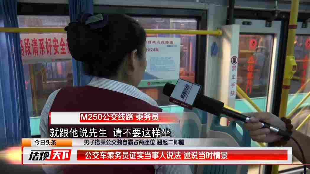 西部公汽M250線路乘務員和記者說到:當時我發(fā)現(xiàn)他這樣坐以后,就跟他說先生,請不要這樣坐,然后可以給別的乘客讓個座位,當時他就有點很不友善地說,你要干嘛,你要干什么。