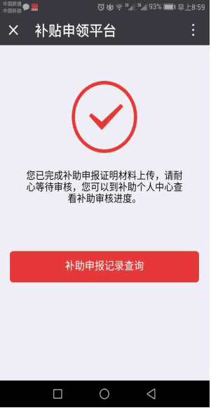 第五步:完成補助預(yù)登記后,點擊【補助申報記錄查詢】即可查詢個人補助申請進度了。