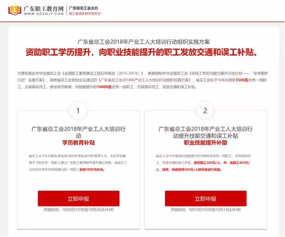 為提高我省產(chǎn)業(yè)工人隊伍素質(zhì),幫助更多產(chǎn)業(yè)工人提升技能水平,按照省總工會黨組會議通過的《廣東省總工會2018年產(chǎn)業(yè)工人大培訓(xùn)行動組織實施方案》,省總工會繼續(xù)向10000名技能提升的優(yōu)秀產(chǎn)業(yè)工人發(fā)放交通和誤工補貼。取得職業(yè)資格證書可獲300~500元補貼,名額有限,先到先得!