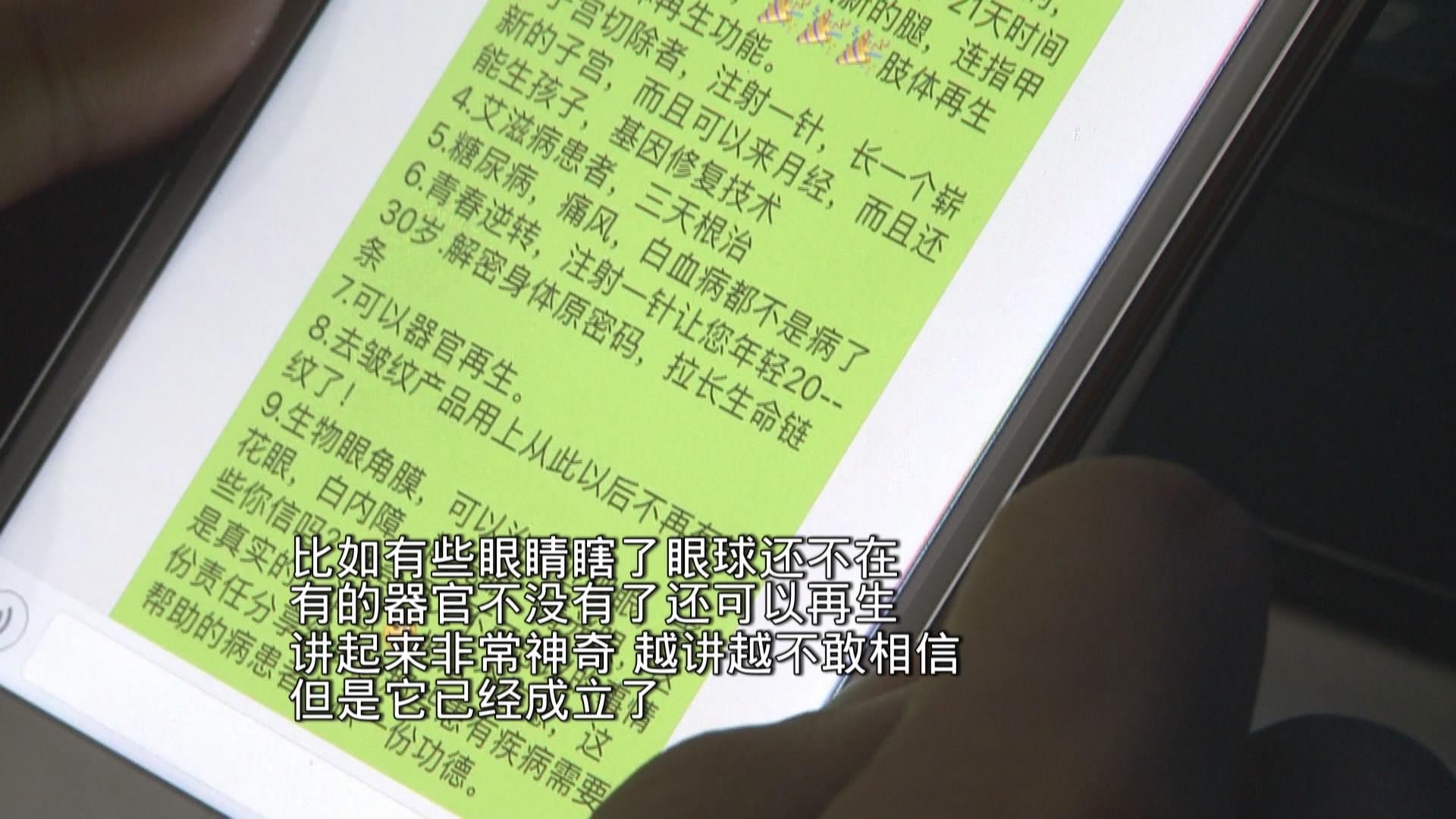 “先機(jī),先機(jī),改變?nèi)祟惷\(yùn)的生物科技”,這條號(hào)稱改變患者命運(yùn)的短信在一些微信群里流轉(zhuǎn),短信內(nèi)容號(hào)稱只要打一針,就能治愈身體上所有的疾病,其中包括癌癥、肢體再生、子宮再生、糖尿病、青春逆轉(zhuǎn)等,還呼吁將短信轉(zhuǎn)給有需要的患者,并表示向全國招募合伙人。