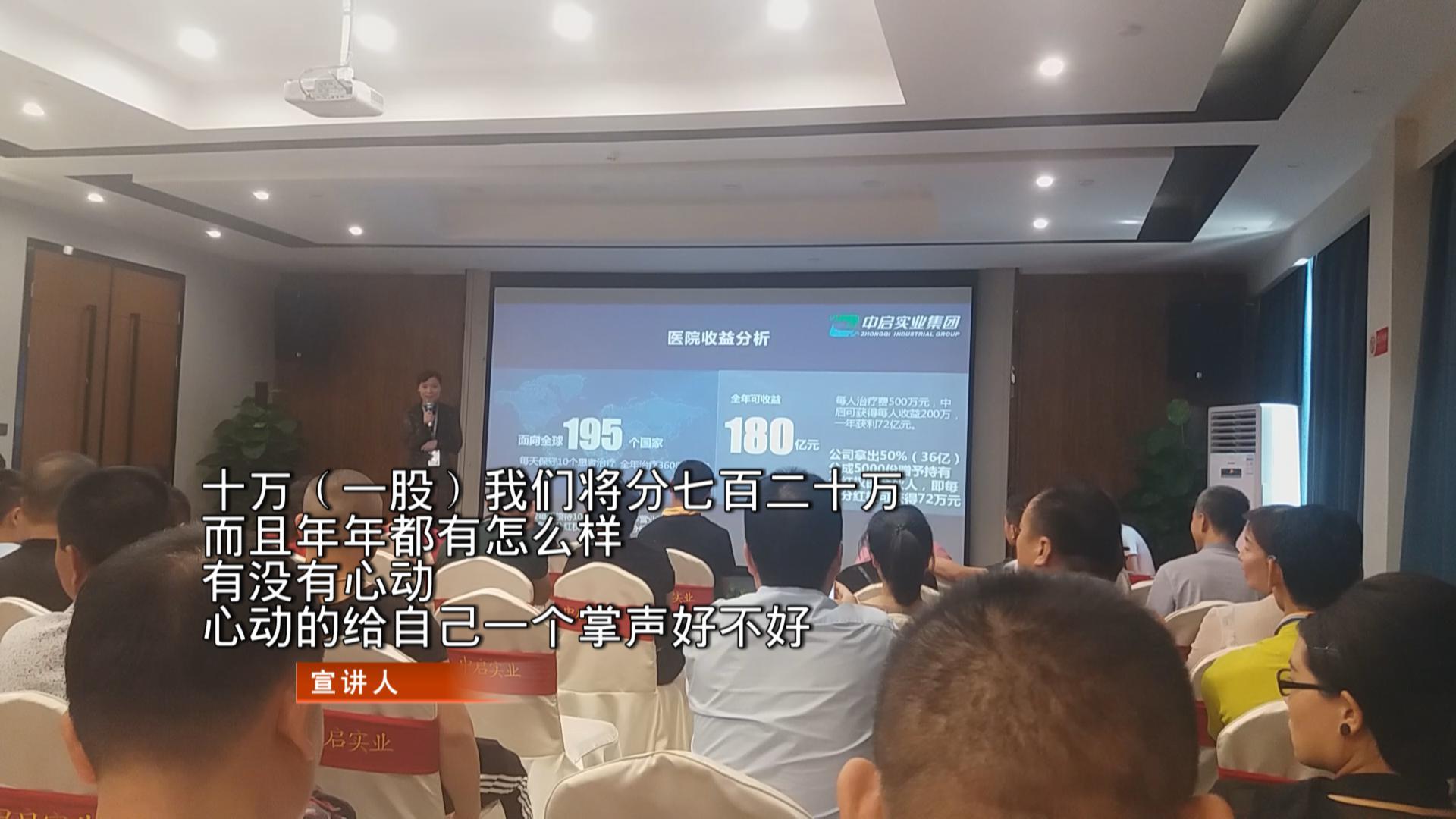 宣講人公布了醫(yī)院的股權(quán)配置,白教授及其團(tuán)隊(duì)占股60%,中啟實(shí)業(yè)集團(tuán)占股40%,其中中啟實(shí)業(yè)集團(tuán)拿出其50%的分紅權(quán),分成5000份給予合伙人,每份分紅價(jià)格為10萬元。