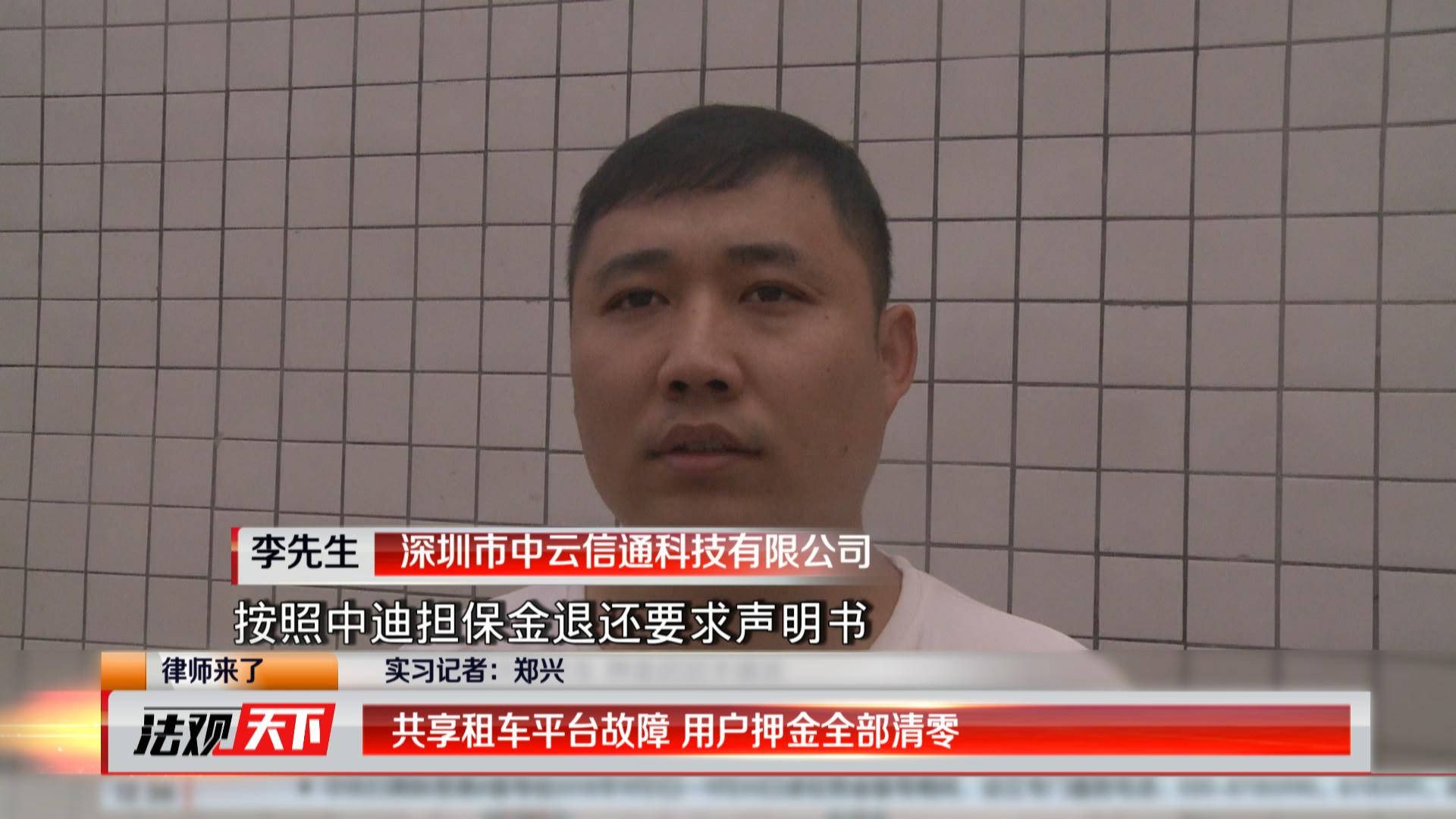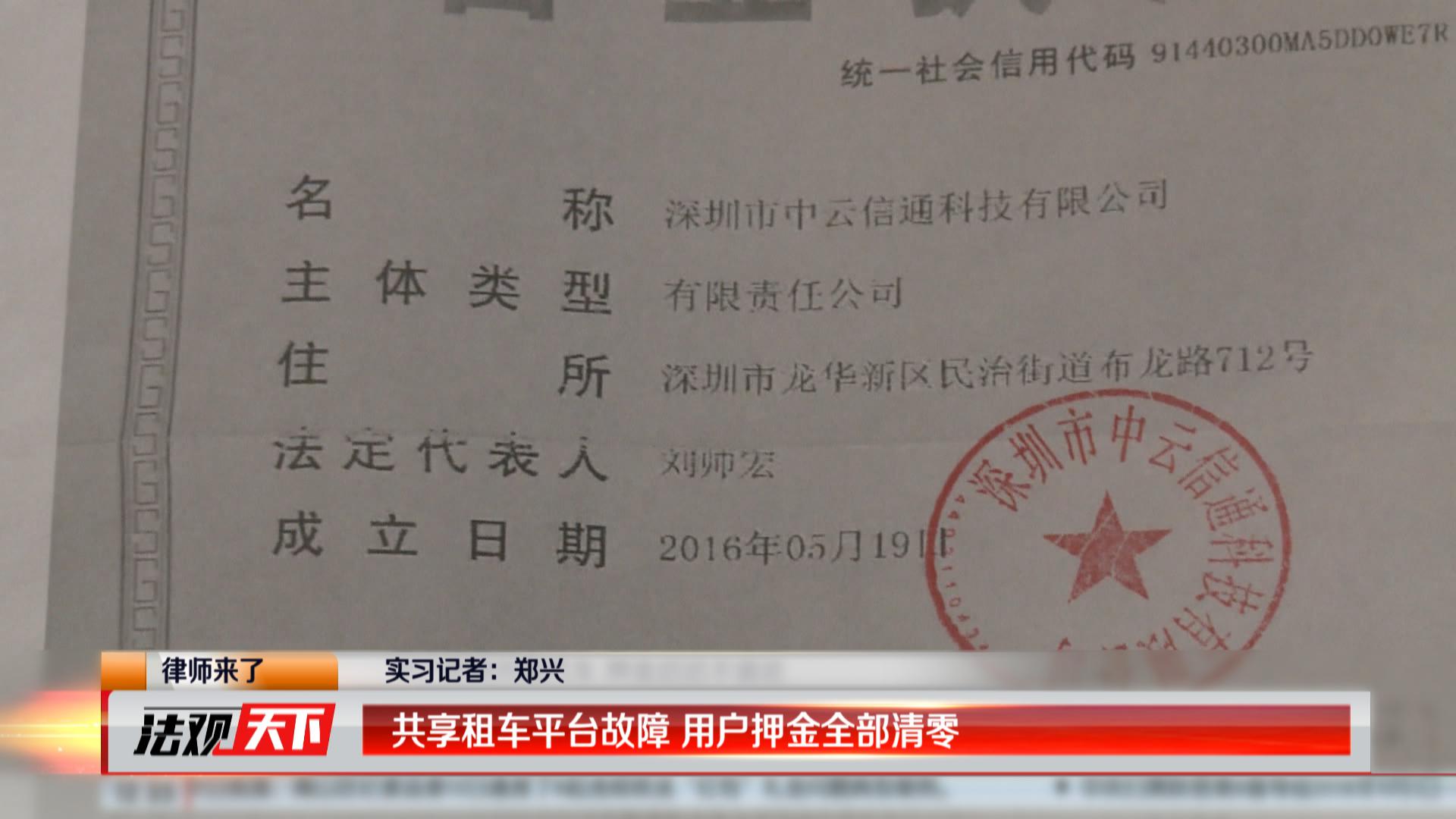 隨后,《法觀天下》嘉賓律師歐陽(yáng)春陪同用戶一起來到了中迪用車所屬的公司,該公司名為深圳市中云信通科技有限公司,位于寶安區(qū)西鄉(xiāng)大道旁的滿京華現(xiàn)代西谷大廈3座11樓了解情況。進(jìn)入公司后,中云信通科技有限公司代表李先生接待了我們,并且說明了APP使用不了和余額顯示為零的具體原因。