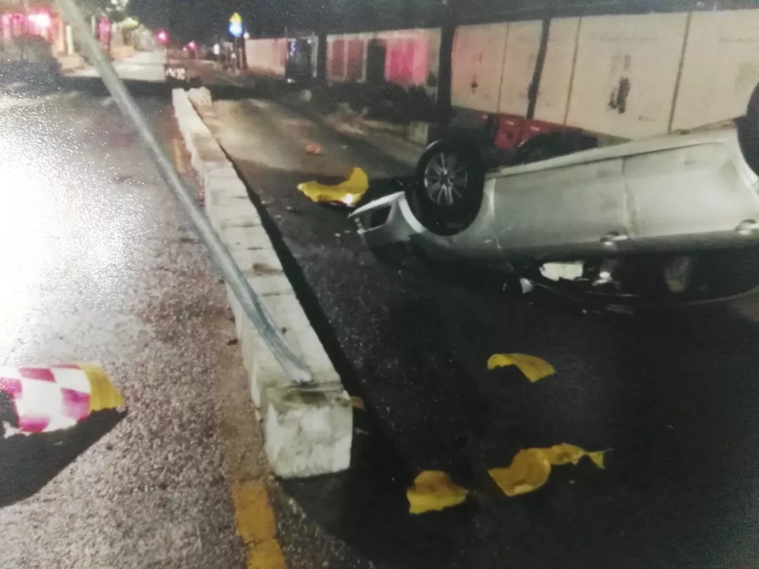 2018年9月22日凌晨4時30分許,深圳交警接報稱在坪山區(qū)馬巒街道坪環(huán)路心海城路段發(fā)生一起小車與路中間隔離水泥墩發(fā)生碰撞導致車輛側翻的道路交通事故。
