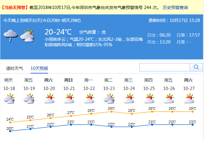 市氣象局發(fā)布未來(lái)十天天氣預(yù)報(bào)(數(shù)據(jù)更新于10月17日15時(shí)28分)