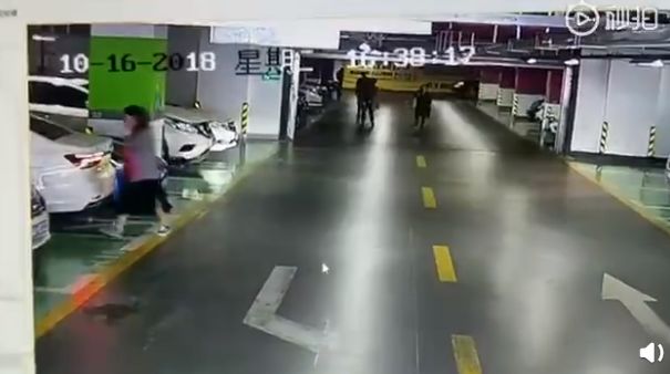 一段地下車庫(kù)監(jiān)控拍下的視頻