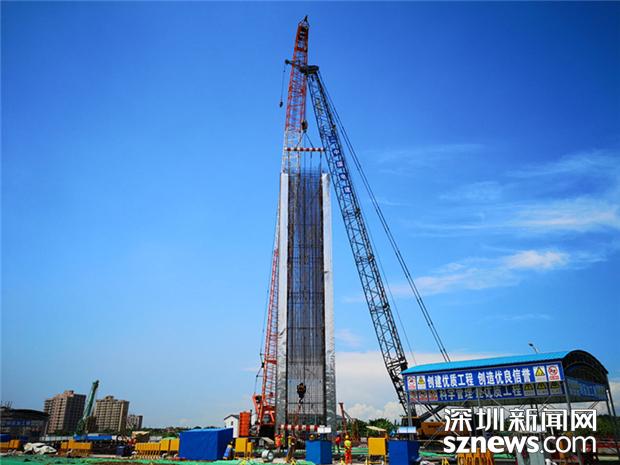 深圳地鐵12號線海上田園東站正在進行地連墻吊裝作業(yè)