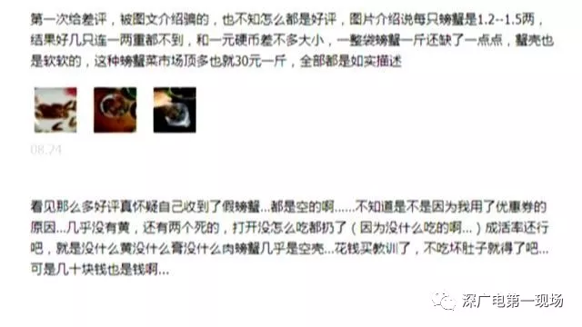 除了短斤缺兩、收到死蟹等,還有消費者稱,在電商平臺上買了大閘蟹禮品券,提貨時卻遇到賣家的推脫,根本提不到蟹。為此業(yè)內(nèi)人士表示,消費者在購買大閘蟹禮券時,要時刻"提防",小心落入不良商家虛假宣傳的套路!